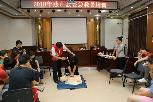 2018年7月5日,燕山教委体卫中心为加强和提高我地区学校、幼儿园教师的急救救护技能,在燕职北台实习基地组织了2018年燕山教委急救员培训活动。此次培训邀请了房山区红十字会卫生救护培训中心的专家,燕山地区17所中小学校、幼儿园以及燕山信息中心、燕山职业学校的主管领导、保健医、体育教师近60余名教师参加此次培训。