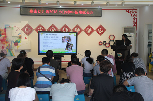 为了进一步加强幼儿园与家庭、教师与家长的密切联系,帮助家长树立正确的育儿观,增进每一位家长对幼儿园工作的了解,创设和谐的教学环境,真正达到家园携手共同培养孩子的目标,使新生幼儿尽快地适应幼儿园生活。燕山幼儿园于7月13日上午召开了小班新生家长会。各位园领导、小班组全体老师们用热诚之心,迎接每一位家长朋友们的到来。