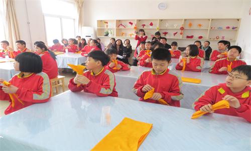 2015年3月18、19两日前进中学初一年级1班、2班59名学生到燕山职业高中实践基地进行实践课程学习。为确保学生安全提升活动效果,班主任老师前期对学生进行了安全教育并强调实践课应注意的事项。学生在实践基地的课程包括餐巾折花、陶艺等6项科目,在每项科目的学习中学生能够认真听讲,根据老师的要求认真完成每一步制作,最终展现出一个个成品。